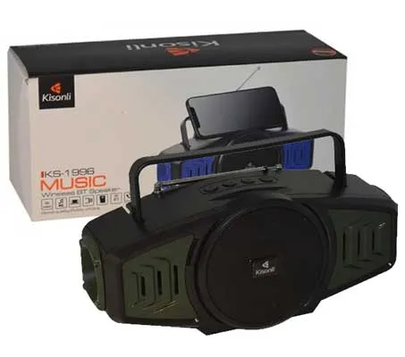 اسپیکر بلوتوثی Kisonli مدل KS-1996 از بلندگوهای استریو با کیفیت پخش صدای عالی بهره می برد. این اسپیکر قابلیت پاسخ گویی به تماس با استفاده از میکروفن داخلی را دارد. Kisonli مدل KS-1996 همچنین دارای نورپردازی از طریق چراغ های LED است. از دیگر قابلیت های اسپیکر بلوتوثی Kisonli مدل KS-1996 می توان پشتیبانی از رم و فلش و همچنین قابلیت پخش رادیو FM نام برد.